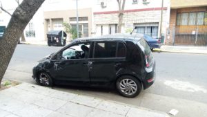 Este automóvil, chocado y con basura en su interior, permanecía así estacionado (en Conde entre Teodoro García y Federico Lacroze) desde unas cuantas semanas atrás.