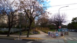 Debido a obras efectuadas por la empresa Aysa y por mejoras en la plaza Mafalda, parte de este tradicional espacio verde del barrio, presentaba este aspecto a principios del corriente mes. Aquí, la esquina de Concepción Arenal y Conde.
