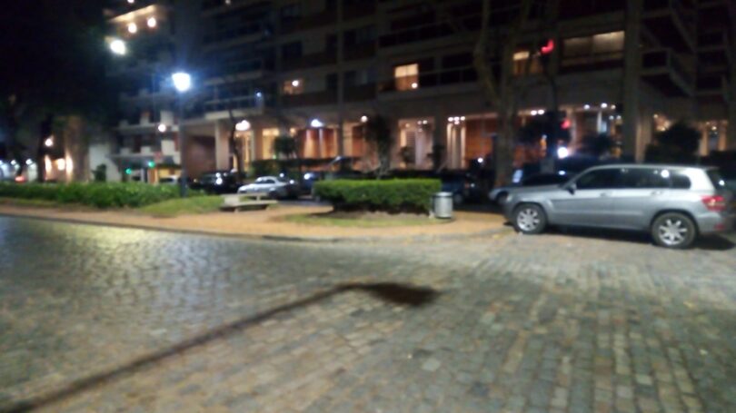 La zona está correctamente iluminada. Una mujer camina con su celular en la mano, algo nerviosa, sin rumbo fijo. Da la impresión de que está perdida, buscando alguna dirección. Por la mitad de la cuadra, cruza hacia la plazoleta. Hasta el momento no se había visto gente con perros, pero, de pronto, comenzaron a aparecer: dos hombres llevan a pasear a uno; una mujer, a otro. Tampoco se habían avistado colectivos; la regla la rompe un 44 que llega a la intersección con Martínez, seguido a poca distancia por otro vehículo de la misma línea.