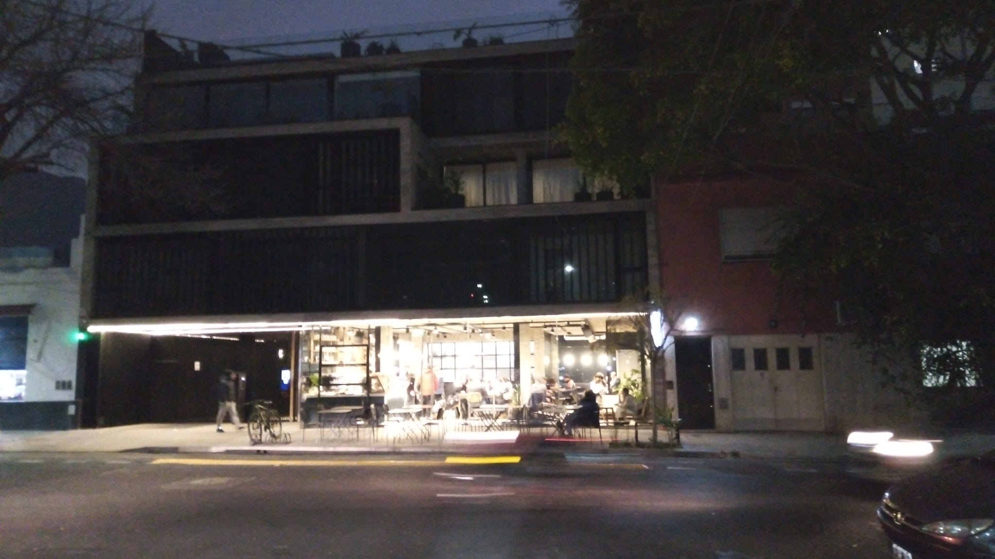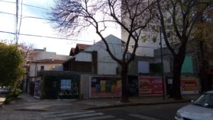 Jorge Newbery y Delgado. Otra muestra de la transformación del barrio. Donde había una locación utilizada por una productora, construyeron esta edificación con un espacio dedicado a la gastronomía en su planta baja.