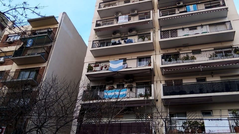 Virrey Olaguer y Feliú al 3000, lunes 20 de junio. En varios hogares, los vecinos de Colegiales celebraron el Día de la Bandera sacando la celeste y blanca al balcón.
