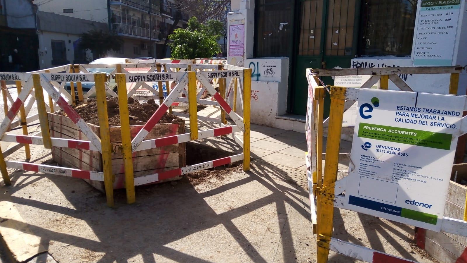 Delgado y Virrey Arredondo. Por unos cuantos días, gran parte de la vereda de Virrey Arredondo (aproximadamente media cuadra, desde Delgado hacia Martínez) presentó este aspecto debido a obras que está efectuando Edenor.