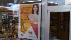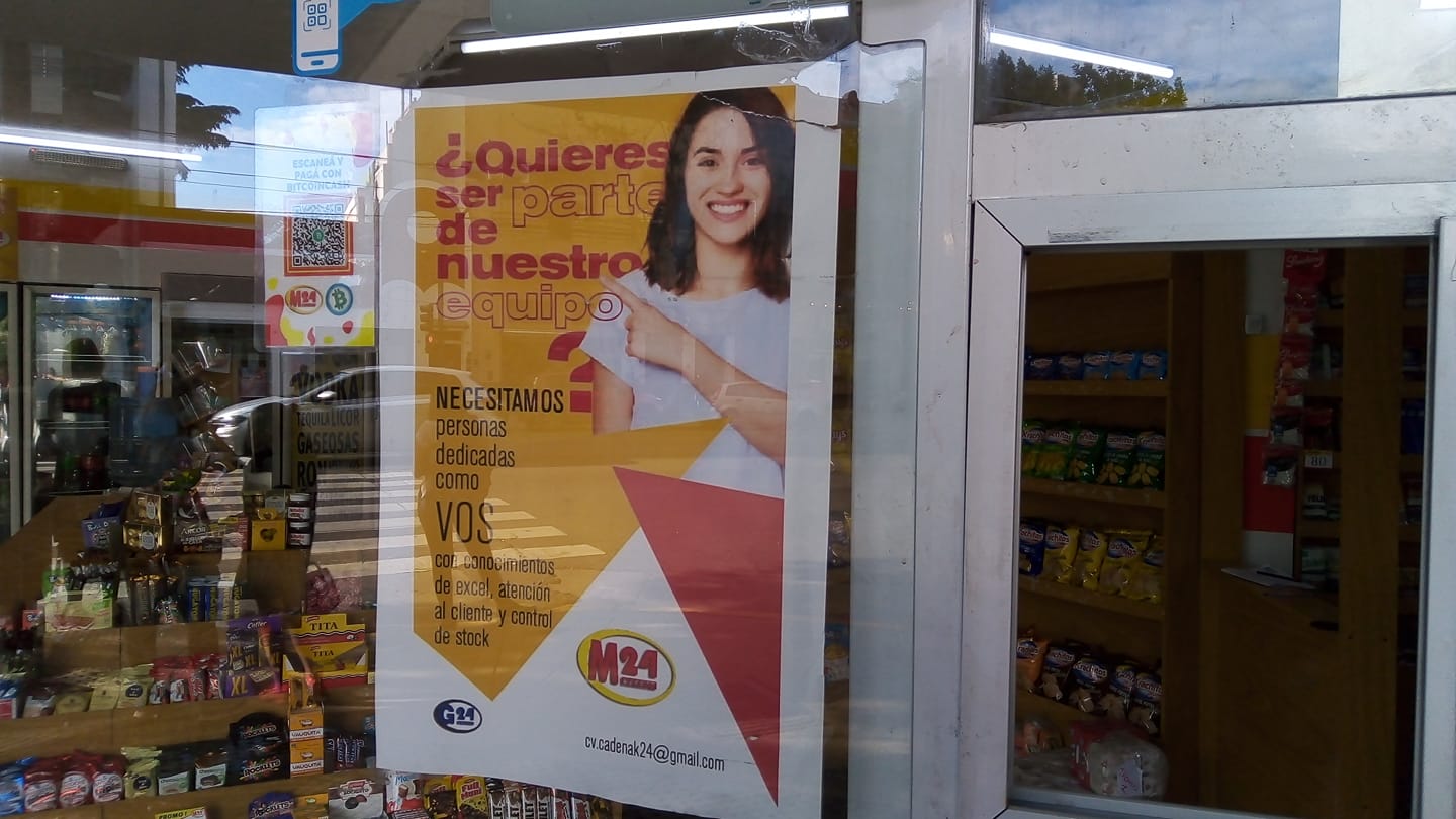 Álvarez Thomas y Palpa. En la vidriera de este comercio perteneciente a una cadena de kioscos, se ofrece trabajo. Piden que los interesados envíen su CV a la dirección de correo electrónico que figura en el afiche.