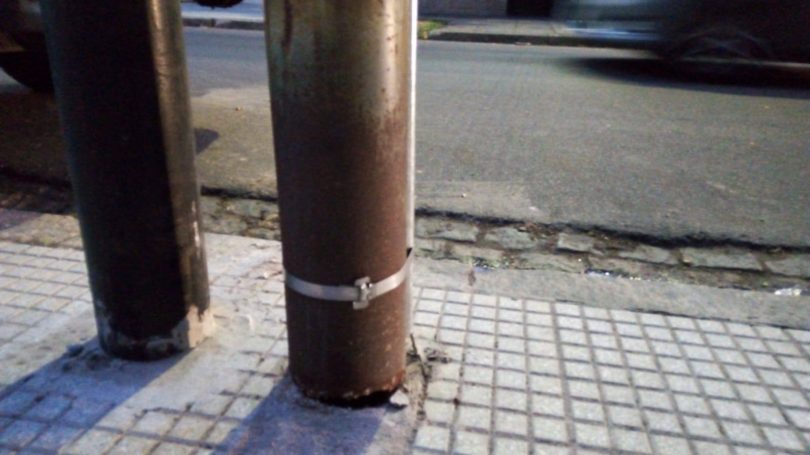 En Zapiola entre Virrey Arredondo y Virrey Loreto (aproximadamente a mitad de cuadra, de mano izquierda), una columna de alumbrado se encuentra deteriorada y oxidada en su base, de acuerdo a lo que se aprecia desde cerca, con riesgo de caída si no se toman las medidas para evitarlo. ¡Atención Comuna 13 de Buenos Aires!