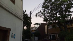 Una bonita decoración en la fachada de una vivienda del barrio. Una mariposa «argentina» y otra «¿italiana?» (los colores también podrían ser de otra bandera), junto a esta puerta de la calle Freire.