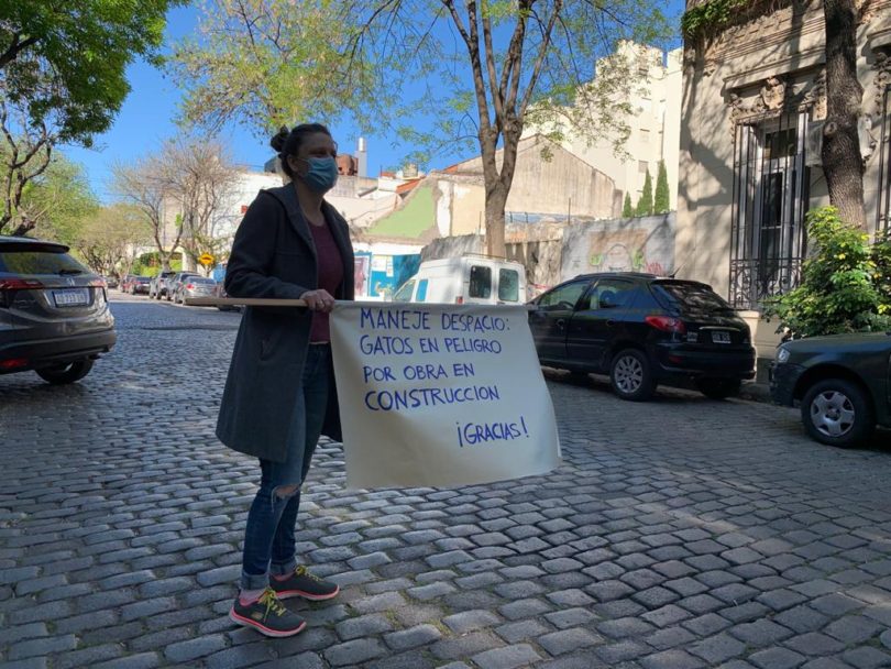 -Quedan 6 gatos: Ningu, Terry, Chino García, Diamante, Nao y Amazonia. Prácticamente aparecen sólo de noche ya que hay mucho movimiento de día, entrada y salida de camiones al baldío -el terreno se usa como obrador de la construcción-. Es probable que el año que viene se construya otro edificio ahí también. De cualquier manera, las voluntarias mantenemos el turno del mediodía para cambiar el agua, ver cómo está la situación y dejar alimento. Es necesario que ellos sientan que no son abandonados, que terminado el horario laboral pueden tomar agua, sentir que el cuidado continúa a pesar de todo.
