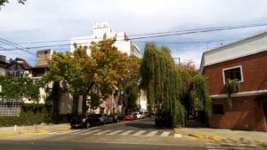 La panadería/confitería Sant’Angelo –entre Delgado y Enrique Martínez- no será un restaurante, por sí es un referente gastronómico para muchos vecinos. El local está abierto. Adentro hay gente y afuera, un hombre aguarda su turno para ingresar. En la esquina con Delgado, justo en la ochava, en la planta baja de una torre una señora tiene su ventana abierta y conversa con alguien que está parado en el exterior. ¿Será un cliente? Claro, es que la laboriosa dama posee un emprendimiento de arreglo de ropa.