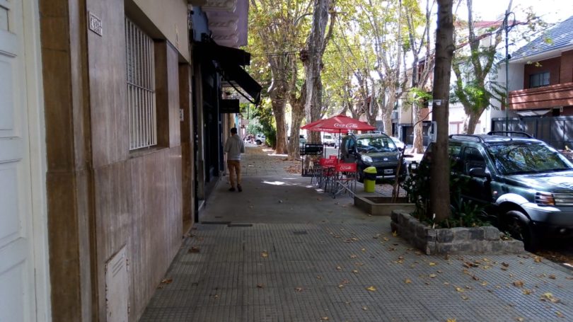 Una vecina que lleva su barbijo en la muñeca, pasea a un perro. Se aproxima el cruce con Freire, donde sí son unos cuantos los negocios. El día y el horario traen como consecuencia que todos estén cerrados, a excepción de una cafetería/heladería, ubicada justo en la esquina. Enfrente, llama la atención un auto estacionado, chocado y con una goma trasera pinchada. ¿Robado? ¿Abandonado? ¿Ambas cosas…?
