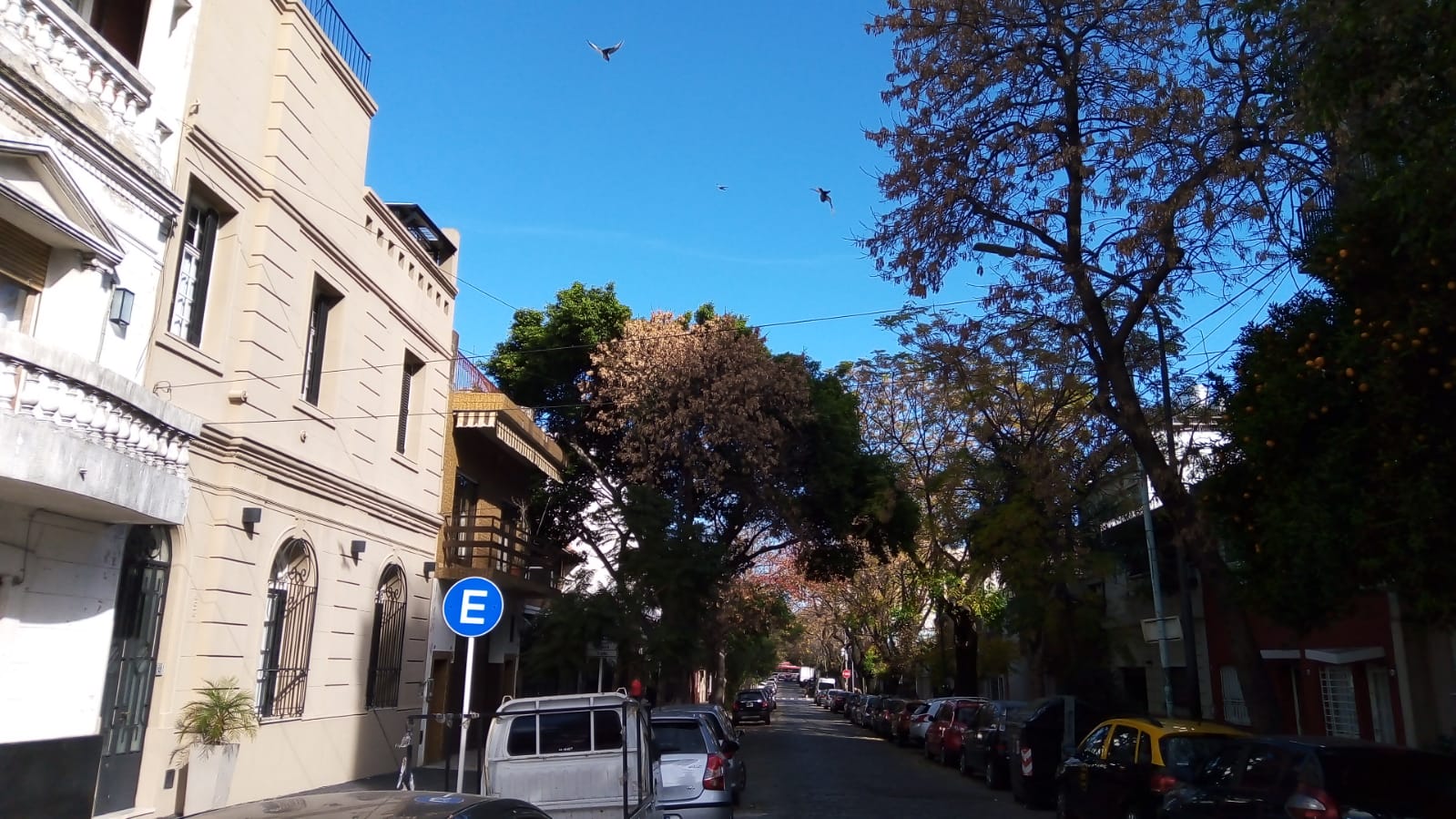 En Arredondo y Martínez, un estacionamiento ocupa una de las esquinas. A mitad de cuadra, hay otro garaje. Llama la atención la vereda de enfrente (la par), por su carencia casi absoluta de árboles -foto principal-. Esta circunstancia provoca que sea muy difícil transitar estas baldosas bajo el sol veraniego. Sin embargo, en mediodías muy fríos como éste, da enorme placer sentir los tibios rayos del sol en el rostro, mientras se contempla, por ejemplo, el bello chalet que se erige en medio de la cuadra. A pocos metros, un auto estacionado junto al cordón (¿cuánto hará que está allí?), tiene en su parabrisas el cartel que avisa que será removido de la vía pública.