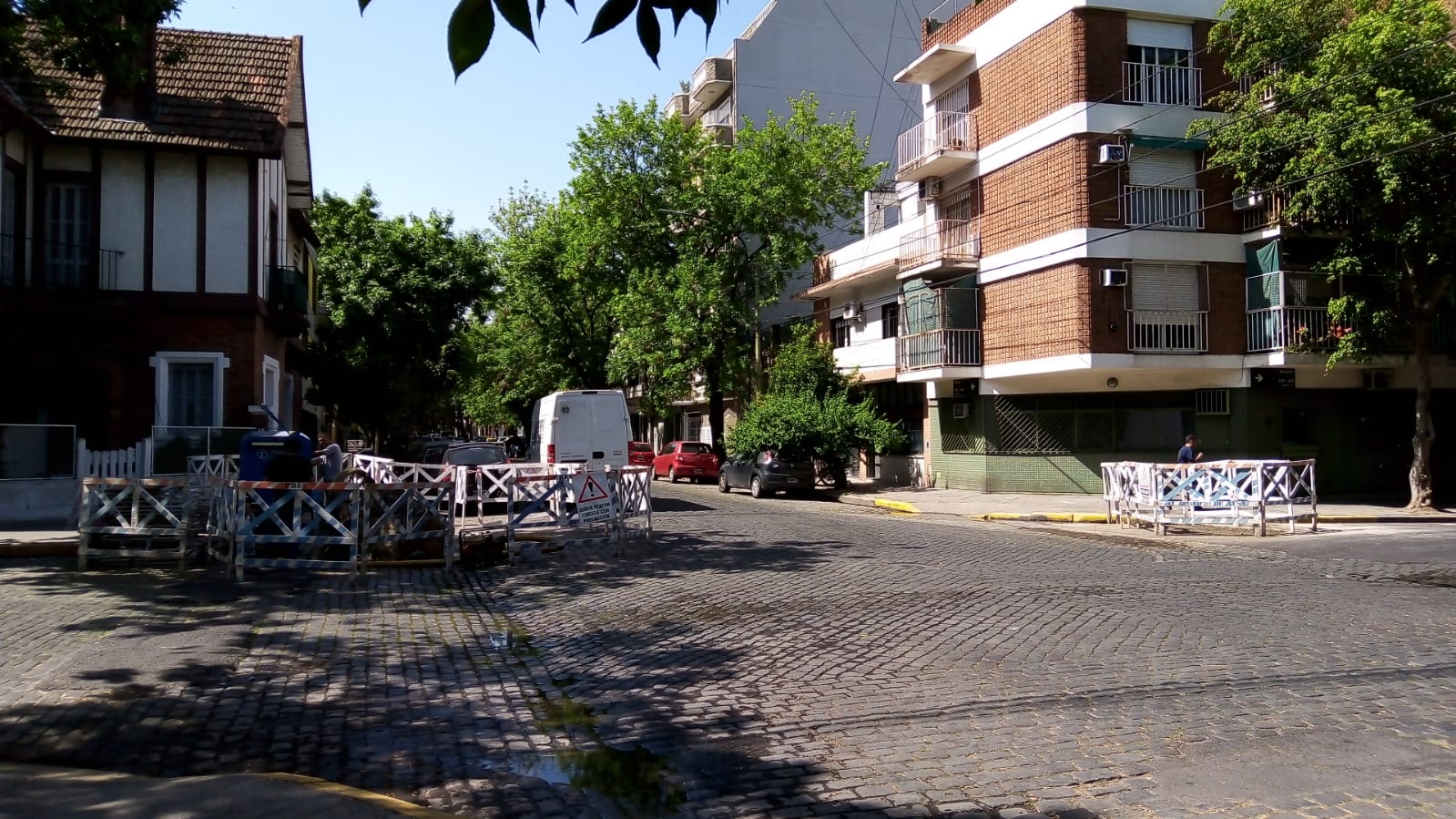 Apenas se cruza esta arteria, hay un baño químico en la vereda. En la puerta de varias casas han pegado volantes publicitarios con una contundente inscripción: “El terror de las cucarachas. Fumigaciones sin olor. No tóxico”. Pese al escaso tránsito, lo que no sobra es lugar para estacionar. Prueba de ello, un automovilista con balizas encendidas, recorre lentamente Olleros –los vehículos están estacionados en ambos cordones-, por ahora, sin éxito. Una vecina arroja basura en un contenedor. A lo lejos, se distinguen más vallados: se trata del encuentro de Olleros con Delgado, esquina donde también Aysa lleva a cabo obras. A propósito de coches estacionados, adentro de uno, una mujer teclea en su teléfono.